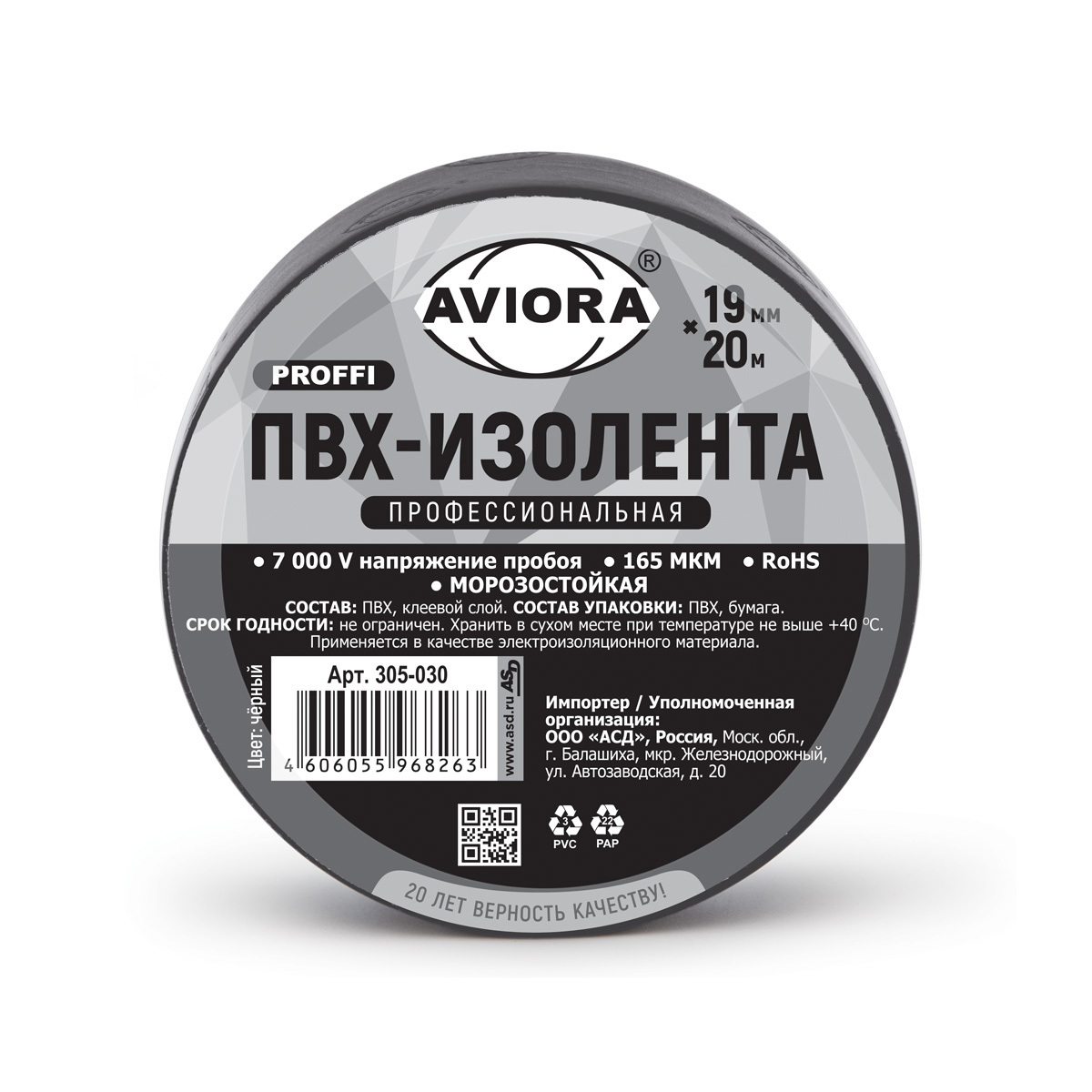 Изоляционная лента выполнена из ПВХ, представляет хороший баланс между прочностью, силой растяжения и эластичностью ленты, что обеспечивает превосходную технологичность продукта и хорошие герметизирующие свойства. Лента имеет устойчивость к влажности, маслам, а также к растворам кислот и щелочей. 165 микрон изоляционной ленты подходит для широкого спектра применений, как внутри помещений, так и для внешнего использования, благодаря своим высоким техническим характеристикам устойчива к климатическому старению, обеспечивает высокую механическую защиту.